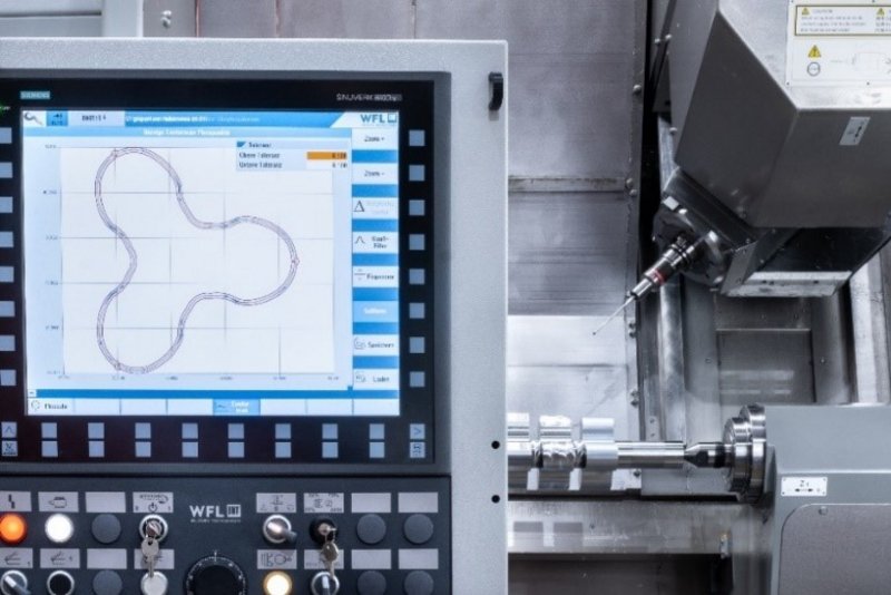 WFL has been integrating measurement technology by Blum-Novotest in its machines for many years, although usually the laser systems, which is used for tool measurement. When BLUM unveiled the digital and analogue touch probe with a shark360 DIGILOG measuring mechanism some years ago, WFL was immediately interested in the scan probing process that it enabled. However, the WFL was initially focussed on automatic roughness measurement, which is also made possible using the digital and analogue RG series probe in this case the TC63-RG. Since then, MILLTURN machines can perform roughness measurements on demand and automatically as part of an in-process solution that eliminates the need to open the machine door, which would otherwise be necessary using the normal manual method of determining roughness values. This presents enormous advantages in production, especially for the automated processes used during unattended operation. Building on the positive experiences gained using the RG probe, WFL came to the idea of using scan probing with the DIGILOG series of touch probes for automatic concentricity measurement. This was the second application implemented that has since been sold by WFL. In this case, the probe generates thousands of analogue measured values in a matter of seconds by ‘scanning’ the surface at up to two metres per minute. These values are then transmitted wirelessly and interference-free in a matter of milliseconds to a receiver in the machine room.