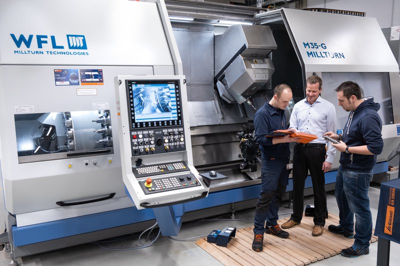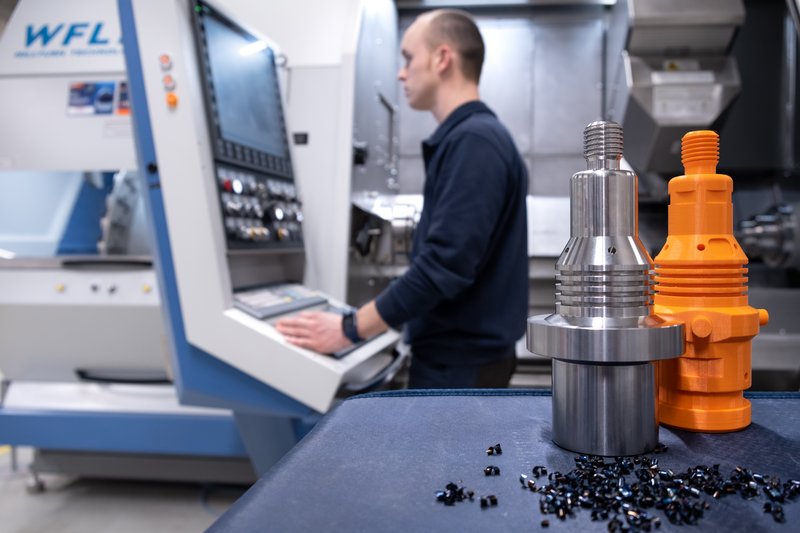 La programmation est effectuée par un système de programmation CAM. Les tâches de programmation plus simples sont effectuées directement sur le pupitre de commande à l'aide de MillturnPRO, un éditeur de programmation interne de WFL. "Nous apprécions son utilisation pour certaines tâches", déclare Thomas Grünberger. "Nous souhaitons avec cela produire encore de très belles pièces de démonstration. En utilisant bien entendu la tourelle et l’unité de tournage-fraisage-perçage en simultané. Et nous avons encore les outils entraînés sur la tourelle. Nous voulons pousser la machine jusqu'à ses limites". Pour des tolérances très serrées, une sonde Renishaw de mesure intégrée est également utilisée. Toute une série de cycles de mesure WFL sont disponibles à cet effet.
