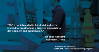 En 2019, la société mère, Hoffmann SE, a célébré son centenaire. Cette année était également celle de la mise en service du premier centre de tournage-fraisage-perçage WFL Millturn au sein du groupe Hoffmann. Cette machine fournit un travail plutôt inhabituel, car l'accent n'est pas mis sur la fabrication de composants, mais sur le test et l'optimisation des outils. Ici, les outils sont impitoyablement poussés jusqu'à leurs limites. Ce qui en reste à la fin, c'est d’innombrable copeaux et des données d'outils précieuses.