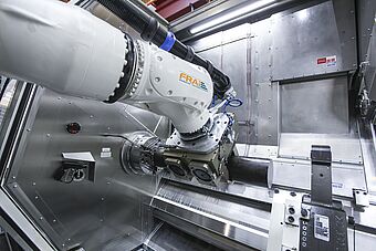 WFL MILLTURN Technologies offre des solutions de machines et de fabrication hautement productives ainsi que des solutions d'automatisation via sa filiale FRAI Robotic Technologies. Cette combinaison est optimale pour avoir une cellule d’usinage intégrée. En fonction des exigences client, différentes variantes d’automatisation sont employées pour le chargement et le déchargement automatiques des pièces. L’éventail s’étend des chargeurs de barres aux robots à bras articulés en passant par les portiques et les AGV (Automated Guided Vehicle). Les systèmes de transport et de stockage périphériques des pièces à usiner, des outils et des mâchoires de serrage peuvent être librement combinés.