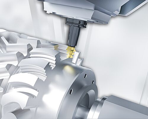 L’usinage s’effectue à partir de la masse ou à partir d’une pièce forgée. Grâce à la possibilité d’usinage de matériaux durs, l’ébauchage devient superflu. La mesure intégrée constitue également un avantage non négligeable, puisque les MILLTURN compensent les influences thermiques et mécaniques.