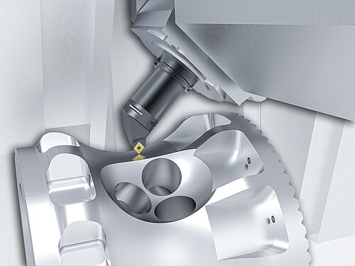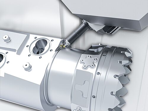 L’ajustement continu de l’angle d’incidence sous la coupe permet de réaliser en une coupe un contour complexe exigeant normalement plusieurs outils (roues de turbines ou parties supérieures de piston de grands moteurs diesel, par exemple). Cette méthode offre les avantages suivants : un résultat d’usinage parfaitement continu et une économie de multiples outils de tournage.