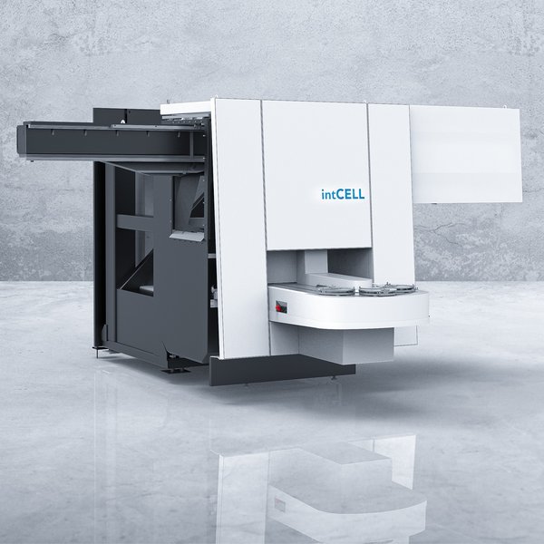 Un ulteriore vantaggio fondamentale della macchina è rappresentato dalla possibilità di integrare in modo semplice le più diverse opzioni di automazione. A seconda delle esigenze del cliente, possono essere realizzati sia robot a braccio snodato, sia caricatori a portale o una cella di produzione integrata con la relativa periferia. La nuova cella di produzione integrata “intCELL” viene montata sul lato destro della macchina e sarà anch’essa presentata al pubblico per la prima volta in occasione di EMO. I pezzi vengono predisposti su un accumulatore di nastro.