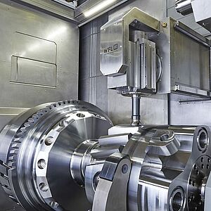 Grazie all‘impiego delle collaudate unità MILLTURN in combinazione con un bancale della macchina di nuova concezione, è stato possibile realizzare un centro di tornitura-foratura-fresatura senza compromessi per la lavorazione completa di pezzi di grandi dimensioni. Grazie alle numerose varianti di teste portamandrino e contropunte, le applicazioni tipiche spaziano dai componenti aerospaziali con un ampio campo di rotazione ai pezzi la tornio e pezzi ondulati più grandi e pesanti.