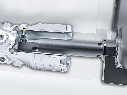 Mediante il bloccaggio prismatico è possibile l’uso automatizzato di utensili per la lavorazione interna pesanti come le barre alesatrici, gli utensili di foratura completa, gli utensili per fori profondi rotanti con alimentazione di refrigerante interna. Gli utensili a rotazione interna a smorzamento di vibrazioni possono raggiungere un rapporto diametro-lunghezza fino a 1:14.