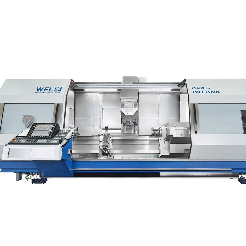 Mit den Modellen M40, M40-G, M40X und M40X-G präsentiert WFL Millturn Technologies eine neue Generation multifunktionaler Dreh-Bohr-Fräszentren zur Komplettbearbeitung komplexer Futter- und Wellenteile bis zu 520mm Umlaufdurchmesser. Neben überlegenen Leistungs- und Drehmomentwerten der Spindelantriebe sorgen gewaltige Vorschubkräfte auf allen Achsen für bestechende Dynamik und höchste Produktivität.