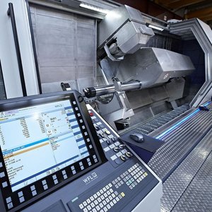 Die Verwendung angetriebener Werkzeuge mit zusätzlicher CNC-Aussteuerung der Schneiden wie Plandrehköpfe (D´Andrea) oder Spezialbohrstangen zur Bearbeitung von Ventilsitzen (Cogsdill, ITS, etc.) erfordert eine zusätzliche NC-Achse. WFL bietet diese Zusatzachse (U-Achse) als Option. Die Möglichkeit der Schrägbearbeitung bleibt auch beim Anbau dieser U-Achse erhalten. Besonders für die Flugzeugindustrie sowie für Hersteller von Ventilblöcken für die Öl- und Gasindustrie ergeben sich ungeahnte Einsparungspotenziale. Um die Stabilität entsprechend zu gewährleisten erfolgt die Aufnahme dieser Werkzeuge ausschließlich über die Prismenschnittstelle. Der automatische Wechsel erfolgt durch das Pick-up Magazin bzw. den Prismenwerkzeugwechsler.