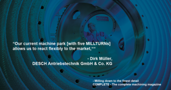 DESCH setzt bereits seit mehreren Jahren auf das Konzept der Komplettbearbeitung. Mit einem Maschinenpark von bereits acht verschiedenen MILLTURN Komplettbearbeitungszentren konzipiert und produziert DESCH Antriebslösungen für unterschiedliche Branchen. Bauteile für den Antrieb von Pressen, schaltbare Kupplungen bis hin zu höchst komplexen Sondergetrieben oder aber auch Großgetriebe für Walz- und Hüttenwerkstechnik sind nur ein kleiner Auszug von möglichen Anwendungen, die aktuell bei DESCH gefertigt werden.