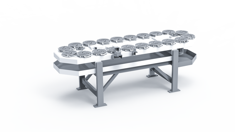 Neste sistema de armazenamento, os suportes de peças de trabalho são rigidamente conectados por uma cadeia. O motor de acionamento garante que os paletes continuem a circular a uma distância constante e sejam posicionados com precisão no ponto de coleta. Os suportes de peças de trabalho tornam o sistema muito flexível e rápido de ser reequipado. As variações em termos de tamanho, número e formato dos paletes permitem um projeto personalizado. Esse sistema de armazenamento de peças é adequado para peças do mandril, bem como para peças de eixo curto, e é particularmente interessante para lotes pequenos.