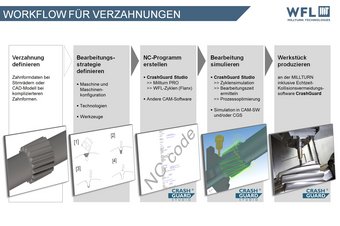 Tecnologias inovadoras permitem altas taxas de usinagem, ciclos de usinagem flexíveis, várias técnicas de medição em processo combinadas com programação e simulações abrangentes. Vários ciclos WFL qualificam a usinagem de engrenagens, pinhões e outras peças complexas. Para garantir alta precisão e solidez, o desenvolvimento contínuo de inovações e ferramentas avançadas de carboneto de tungstênio estão no topo da nossa agenda. A qualidade é ainda assegurada através dos poucos números de fixações. Desempenho maduro, ferramentas modernas e ciclos de usinagem provados resultaram em tempos de entrega extremamente reduzidos, o que comprova a sustentabilidade do MILLTURN.