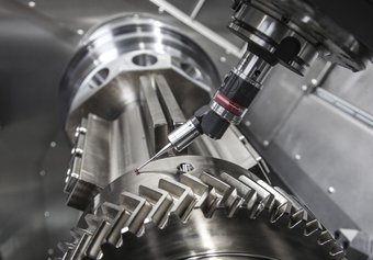 O M120 MILLTURN / 3000 mm usa a nova tecnologia de medição e teste da BLUM-Novotest. A usinagem de peças grandes, pesadas e complexas coloca desafios significativos para os sistemas de medição. Com a sonda de medição TC63-DIGILOG integrada, as medições digitais e os processos de digitalização analógica podem ser realizados diretamente na máquina. As medições analógicas são especialmente úteis para a avaliação de superfícies ou contornos (por exemplo, verificação da superfície de uma peça para erros de usinagem). Com uma sonda digital de toque, por outro lado, um grande número de pontos precisariam ser tomados em tais casos para garantir uma resolução adequada.