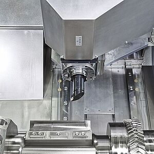 Quem quer estar à frente na participação no mercado, deve reagir rapidamente e com flexibilidade às exigências do cliente. Mas os componentes desejados são cada vez mais complexos e, por conseguinte, mais caros de fabricar. Por meio da concentração de todas as etapas de produção em uma máquina multifuncional de sinagem completa MILLTURN, os requisitos das tarefas de usinagem atuais e futuras são alcançados ao máximo. Graças ao CNC e todas as opções de interpolação dos eixos B, C, X, Y e Z, se faz possível um espectro incomparável de tecnologias. É possibilitada a usinagem completa sem intervenções manuais através de torneamento, perfuração, fresamento, perfuração profunda, denteamento externo e interno, fresamento circular bem como medição automática da peça de trabalho para conformidade com as tolerâncias mais rigorosas e compensação de influências térmicas.