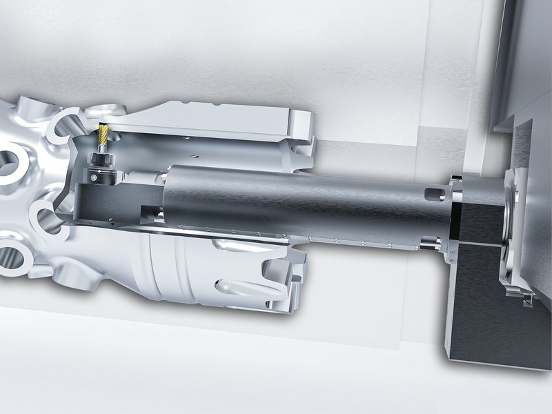 As barras de perfuração anti-vibratórias podem ser montadas de forma segura na unidade de fresamento por meio de uma acomodação especial em rabo de andorinha. Além disso, as barras de perfuração do sistema WFL permitem a troca automática de cabeças de corte.