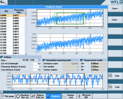 Die Ultraschallmesseinheit erlaubt es, die Wandstärke von Bauteilen zu messen. Eingesetzt wird diese Methode bei langen Rohren oder tiefen Innenkonturen, welche mit einem Messtaster meist nicht mehr gemessen werden können. Mit den WFL-Messzyklen werden auf einfache Art und Weise die Wandstärken gemessen und ausgewertet. Durch die verschiedenen Auswertungsalgorithmen lässt sich etwa der Zentrumsfehler einer Innenkontur bestimmen.