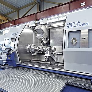 M80机床的一个基本特点就是,源于模块机床理念,以及单台机 床的最佳尺寸配置,使庞大的配置多样性成为可能。机床基于使 刀具和工件到床身的距离最短及导轨间距离最宽的理念,从而使 刚性和理想尺寸达到最佳状态。